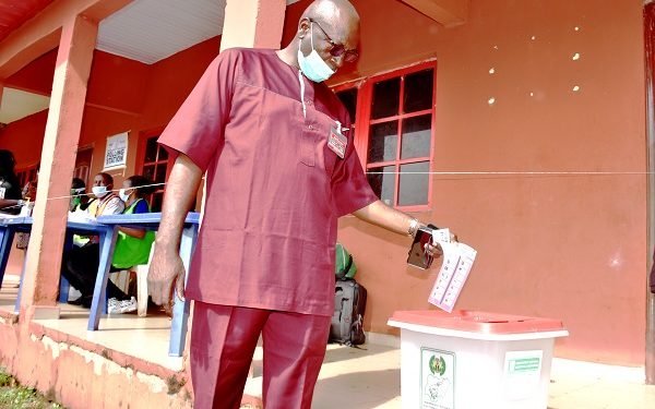 The All Progressives Congress (APC) Governorship candidate, Pastor Osagie Ize-Iyamu has voted.