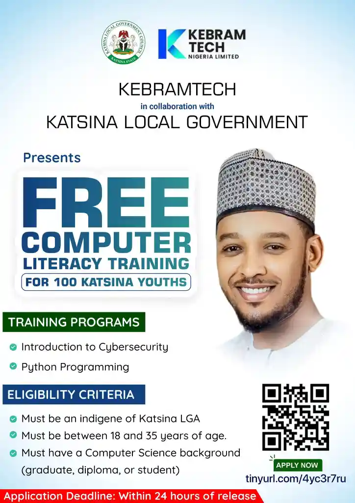 The Katsina Local Government Council, in partnership with KebramTech, has opened applications for 100 free training slots in computer literacy for young people in the area.