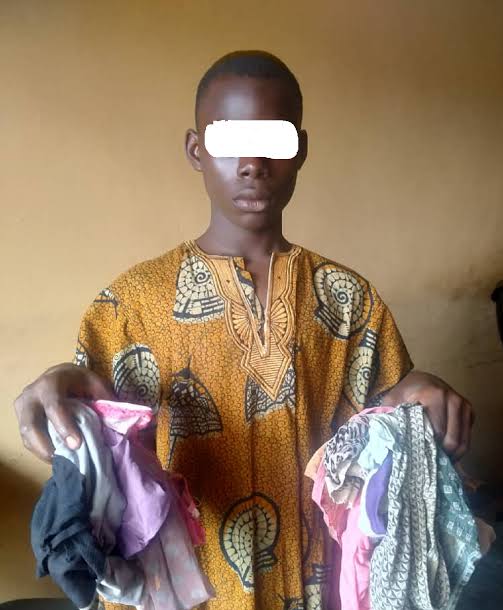 The Ogun State Police Command has arrested Adeniyi Muhammed, a 14year old boy with used female pants.